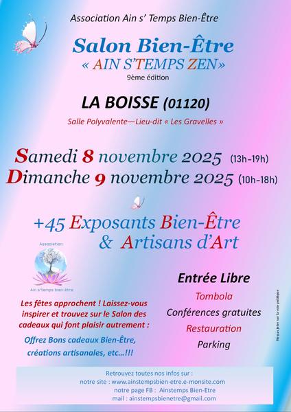 Du 08/11/25 au 09/11/25Foire ou salonSalon Bien-Être "Ain s'Temps ZEN"