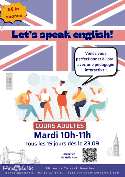 Le mardi 16 décembre 2025 de 10h à 11hConférence / Débat / RencontreLet’s Speak English adulte à l’AbriCôtière