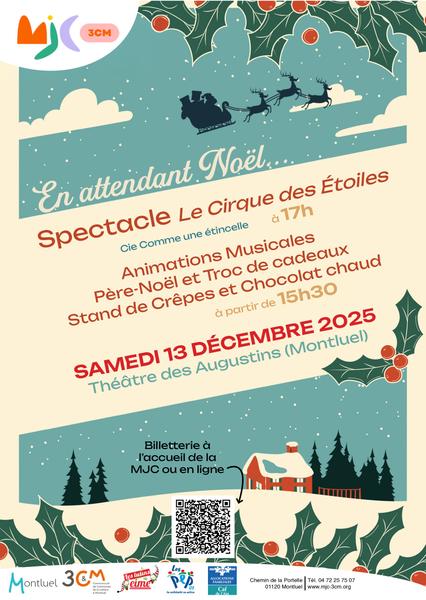 Le samedi 13 décembre 2025 de 15h30 à 17hSpectacleEn attendant Noël... et Spectacle de Noël : "Le Cirque des Etoiles"