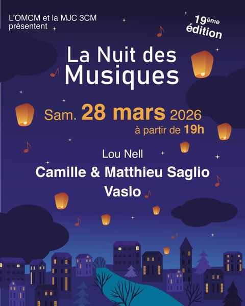 Le samedi 28 mars 2026 de 18h30 à 22h30ConcertLa Nuit des Musiques - 19ème édition