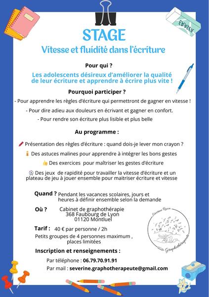 Stage d'écriture pour les adolescents pour travailler le geste fluide et gagner en rapidité d'écriture. Au programme : Présentation des règles...