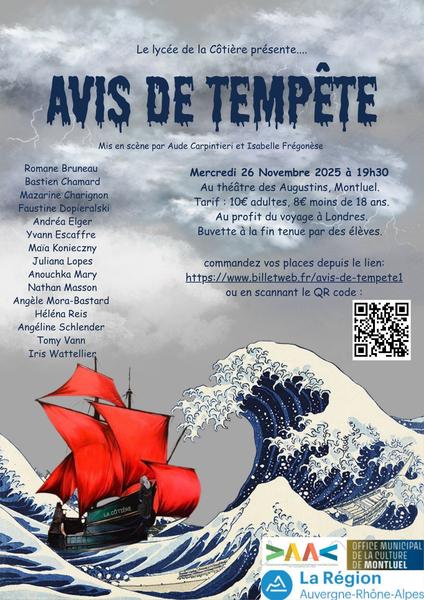 Avis de tempête est un montage composé par ls élèves de 1ère option théâtre lycée de la Côtière Venez découvrir ls talents de cette troupe qui...