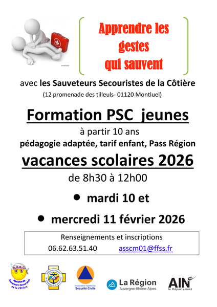 Du 10/02/26 à 8h30 au 11/02/26 à 12hFormation aux gestes de premiers secours pour les jeunes