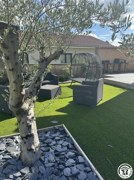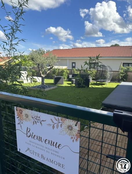 espace extérieur privatif au gîte. Maison moderne mitoyenne à une location à l'année. Commerces sur place pour plus de praticité. Facilité d'accès pour le stationnement gratuit grâce à la proximité du parking de la mairie.
